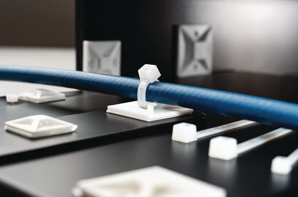 | Aplicação | Onde velocidade, simplicidade e uma base de fixação firme são necessários, esses clips autoadesivos são ideais. Consiste numa base de fixação para aplicação de abraçadeiras série T dotada de uma fita adesiva dupla face que pode ser fixada em chapas e painéis. |