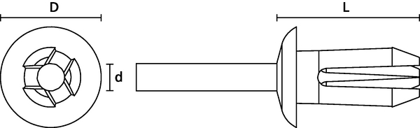 Rebite plástico, ⌀4.7 - 4.9 mm, T=2.5 - 7.0mm, preto 100Pcs.